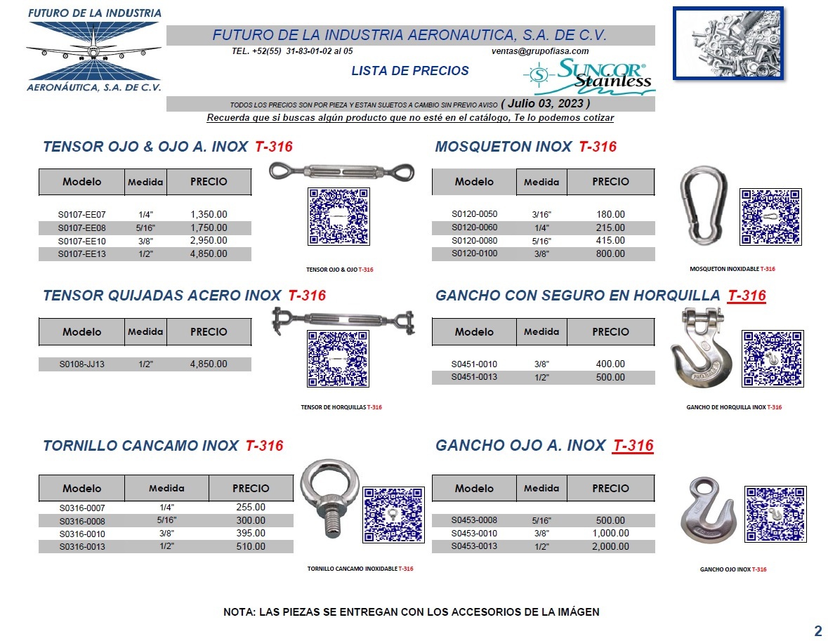 Aplicaciones: Comúnmente utilizado en la fabricación de utensilios de cocina, equipos de procesamiento de alimentos, componentes de maquinaria, y estructuras arquitectónicas.